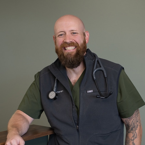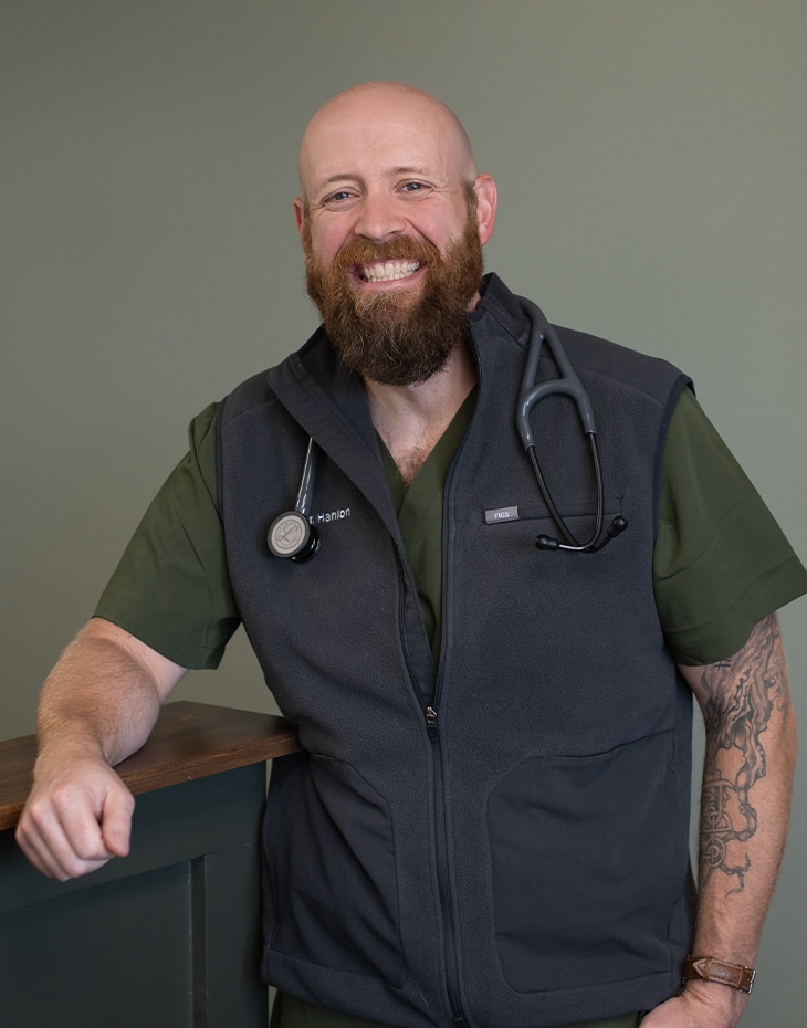 Equal parts surgeon, science nerd, and blacksmithing D&D paladin, Dr. Michael Hanlon brings precision and practicality to every case—especially when it comes to dentistry, surgery, and pain management. He’s a steady presence in the exam room and a walking example of doing what you love with both hands.